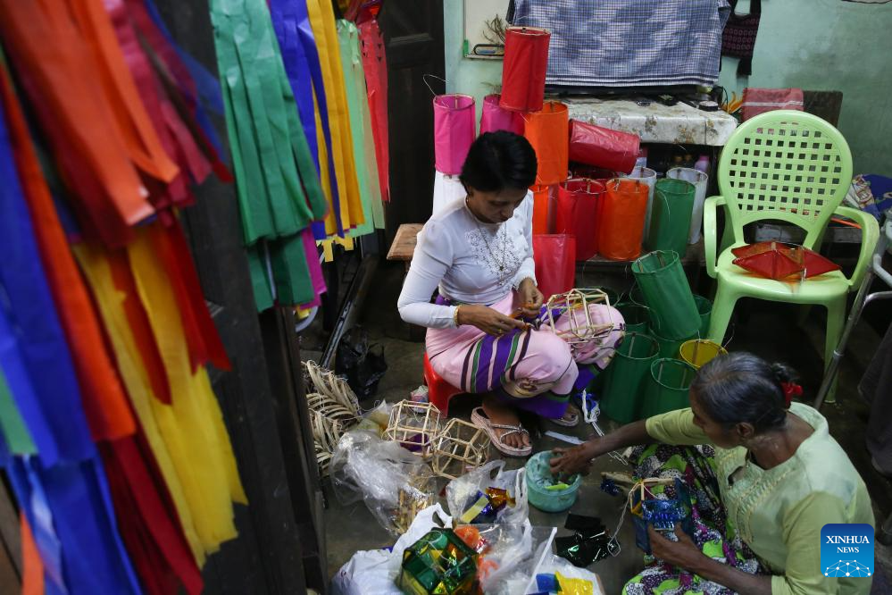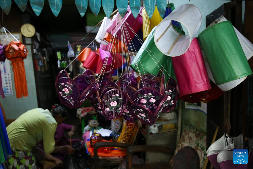 YANGON, Oct. 2 (Xinhua) -- Decorating lanterns at homes, restaurants, and supermarkets across Myanmar to welcome the Thadingyut Festival is a cherished cultural practice. The glowing lanterns not only brighten the night but also carry the spirit of preserving Myanmar's traditional bamboo lantern crafts.
