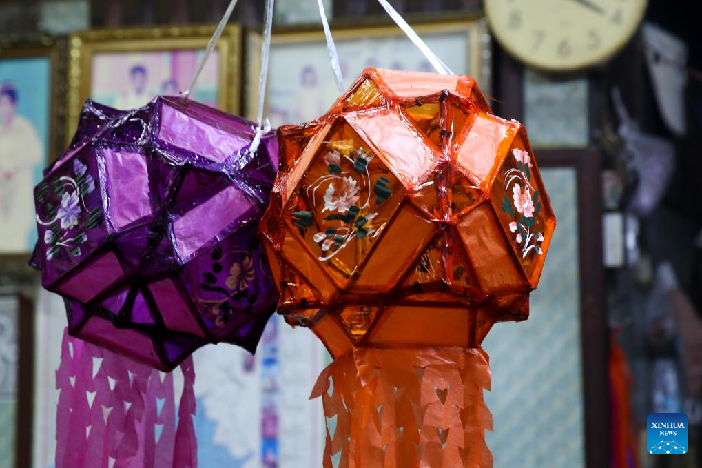 Traditional lanterns are displayed at a shop for Thadingyut Festival in Yangon, Myanmar, Oct. 1, 2025. Decorating lanterns at homes, restaurants, and supermarkets across Myanmar to welcome the Thadingyut Festival is a cherished cultural practice. The glowing lanterns not only brighten the night but also carry the spirit of preserving Myanmar's traditional bamboo lantern crafts.