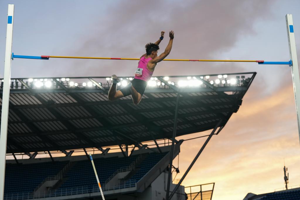 9月7日,2025年世界田联洲际巡回赛(金标)北京站男子撑杆跳高比赛,中国选手黄博凯在比赛中。最终,他和菲律宾选手欧内斯特·约翰·奥贝纳获得并列季军。新华社记者 鞠焕宗 摄