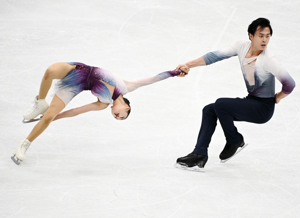 张嘉轩/黄一航(右)在9月20日的双人滑自由滑比赛中。新华社记者 张晨霖 摄