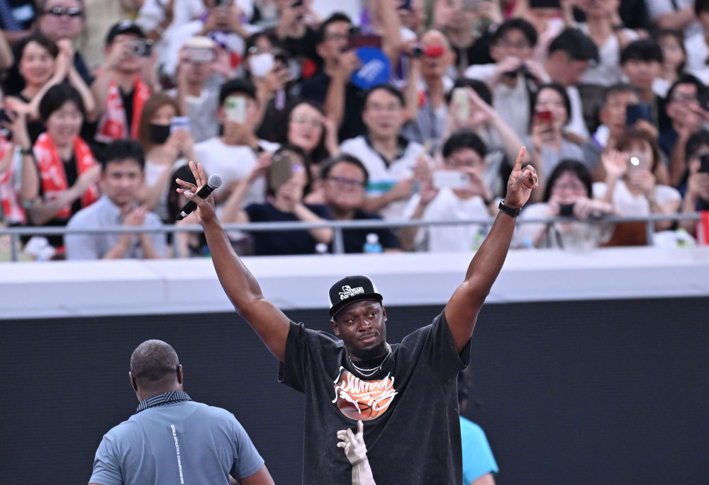 9月14日,牙买加短跑名将博尔特现身日本东京国立竞技场。新华社记者 宋彦桦 摄