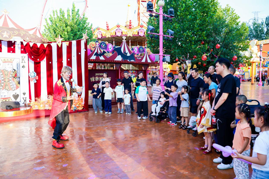 同时,北京欢乐谷安排了百余场精彩演出,为游客打造了专属欢乐记忆:亲子家庭可沉浸感受童话偶型剧《木偶奇遇记》的奇幻与欢乐,在2000m2的乐迪历险记中开启充满想象力的奇幻冒险;抑或与国际马戏演员展开滑稽互动;年轻游客则涌入废土风Livehouse中释放激情,抑或在魅影奇幻大巡游中邂逅尖叫时刻。每场演出皆打破观演界限,游客也能成为演出的一部分,收获专属情感共鸣。